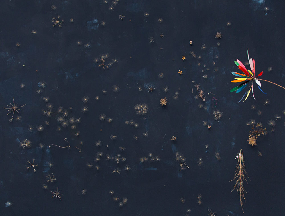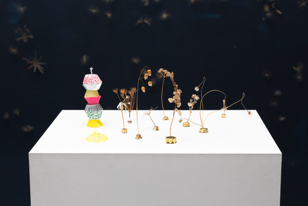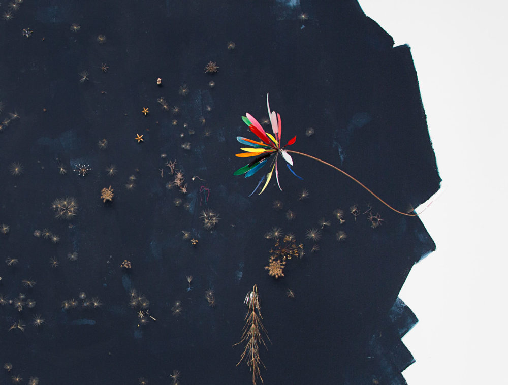 Installation, peinture, végétaux, perles 4 x 3,5m, 2015