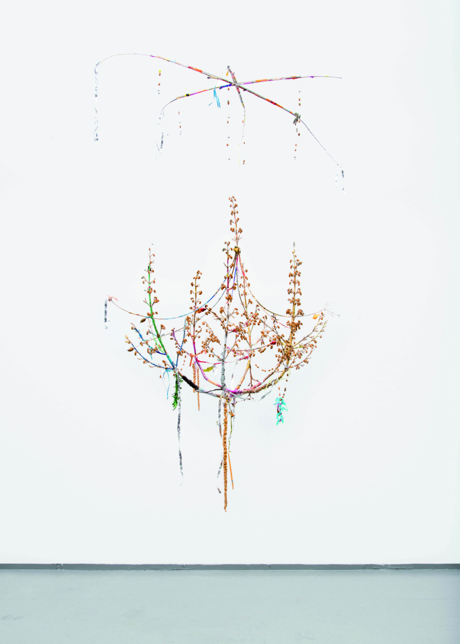 végétaux , plastiques, fil, alu 100 x 150 cm, 2011