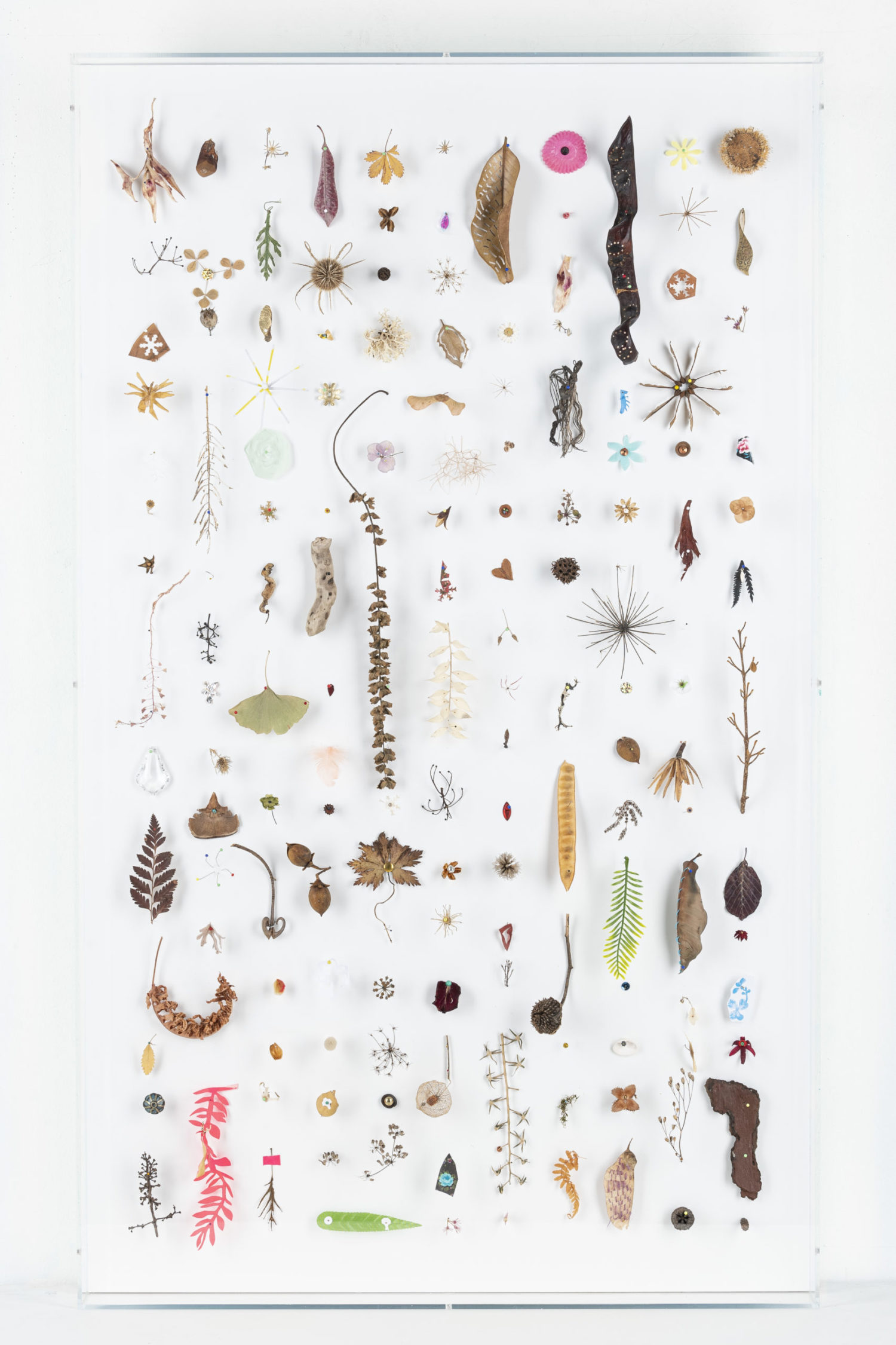 techniques mixtes, vitrine en plexiglas, 74 x 126 x 4 cm